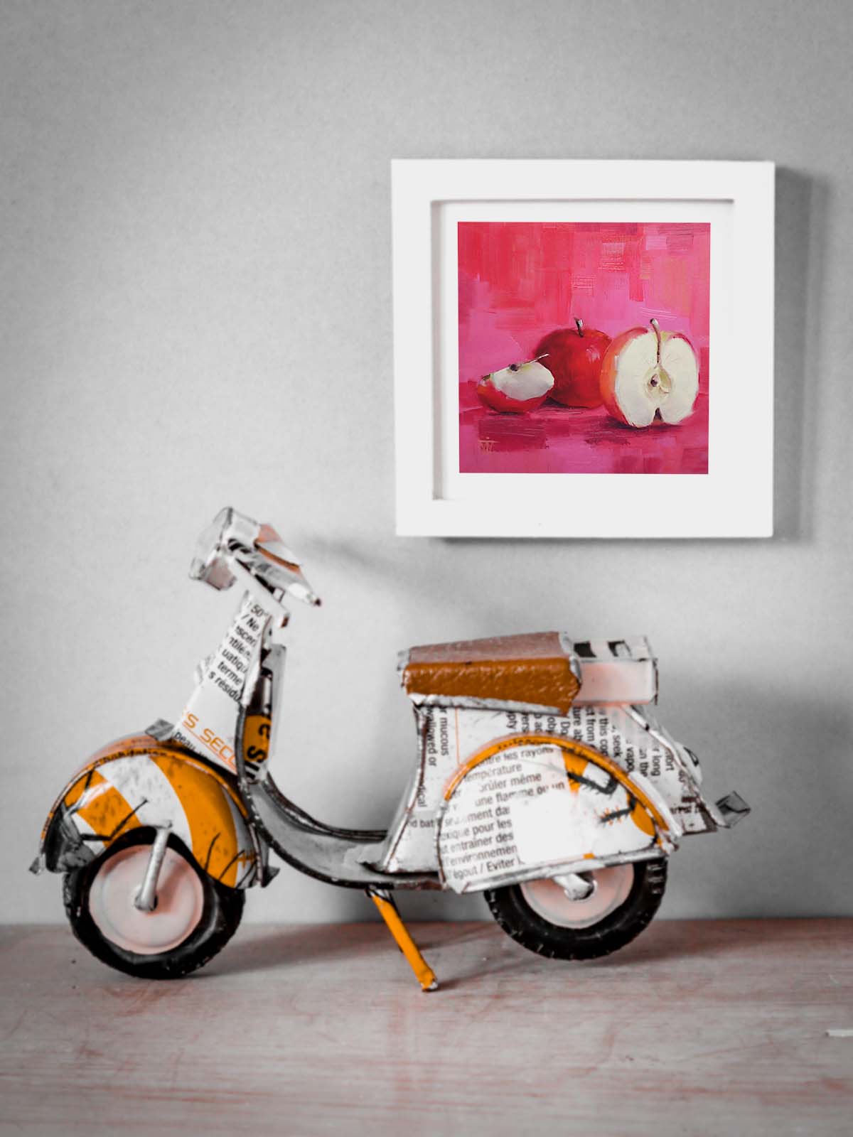 You know that feeling when morning light hits your coffee cup just right? Or when you finally use the good china on a Tuesday, just because? That's the essence of what I paint. Each small oil painting of fruit, flowers, and everyday treasures is an invitation to slow down and notice the beauty hiding in plain sight.