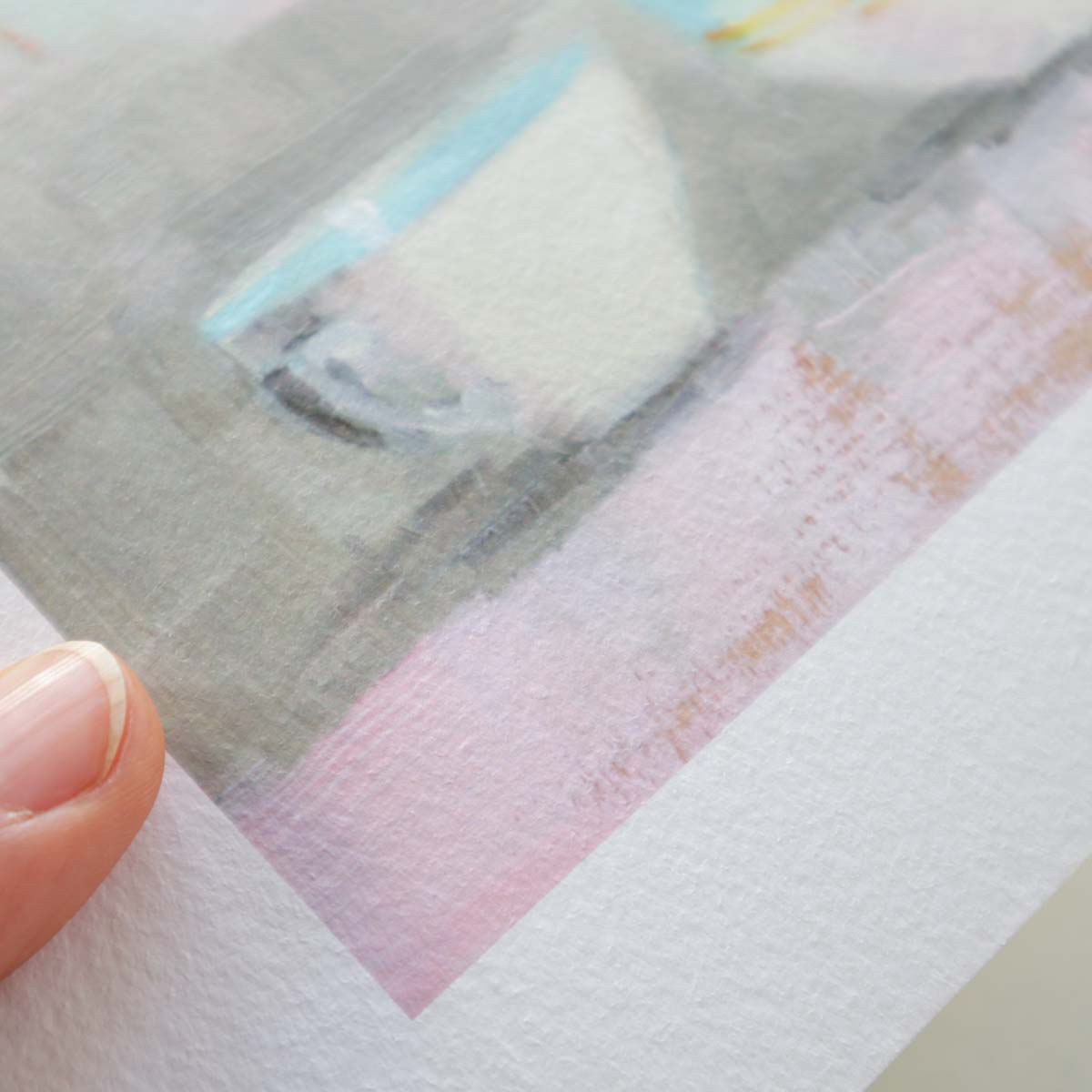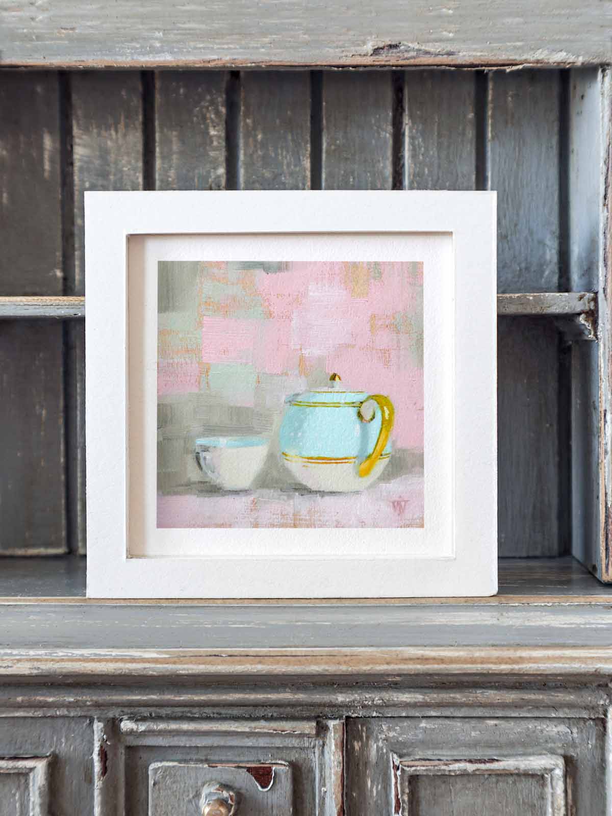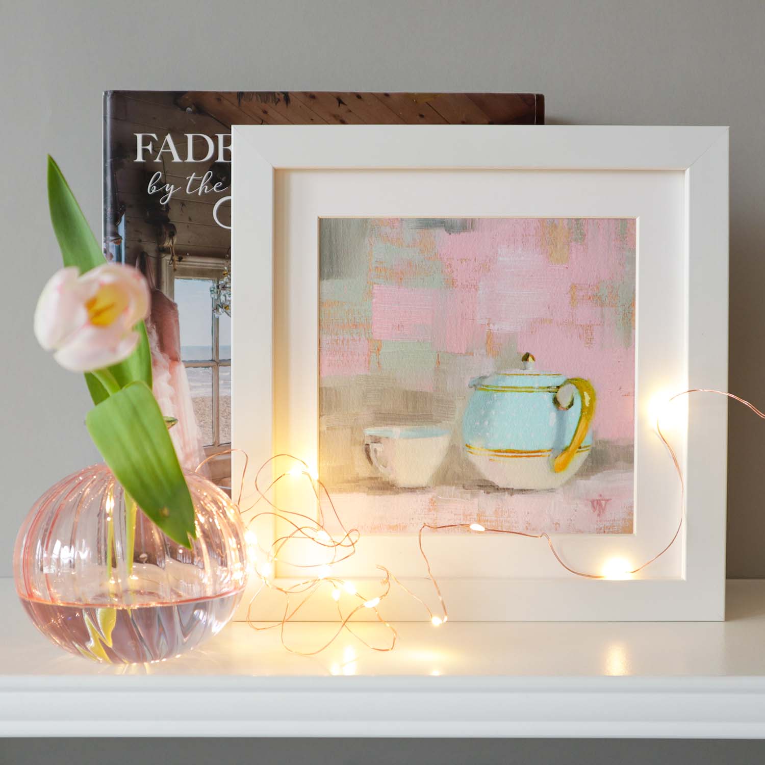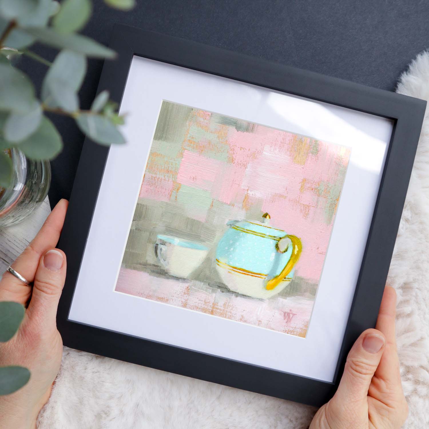 A painting with a splash of colour and a picture of items with relevance to me. But beyond that I love the delicate connection I now have with the painter simply by knowing she studied this object as carefully as I am every day. And the wraparound care with framing and delivery was seamless too!