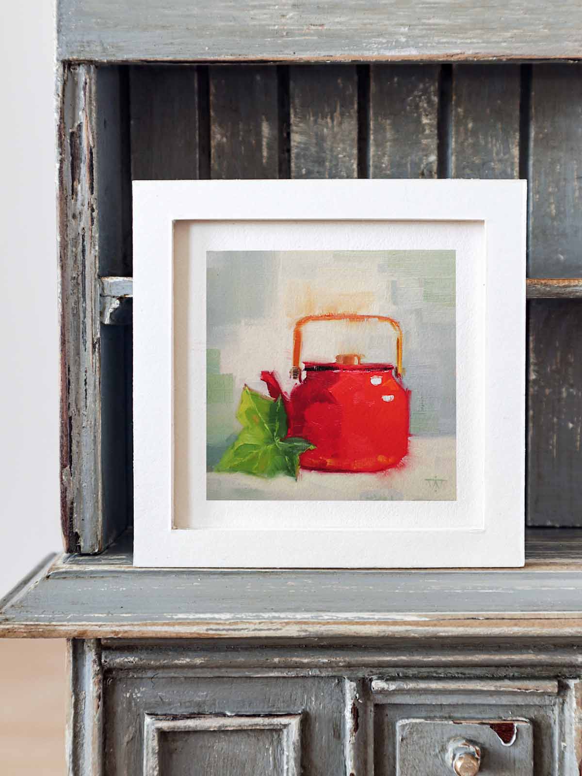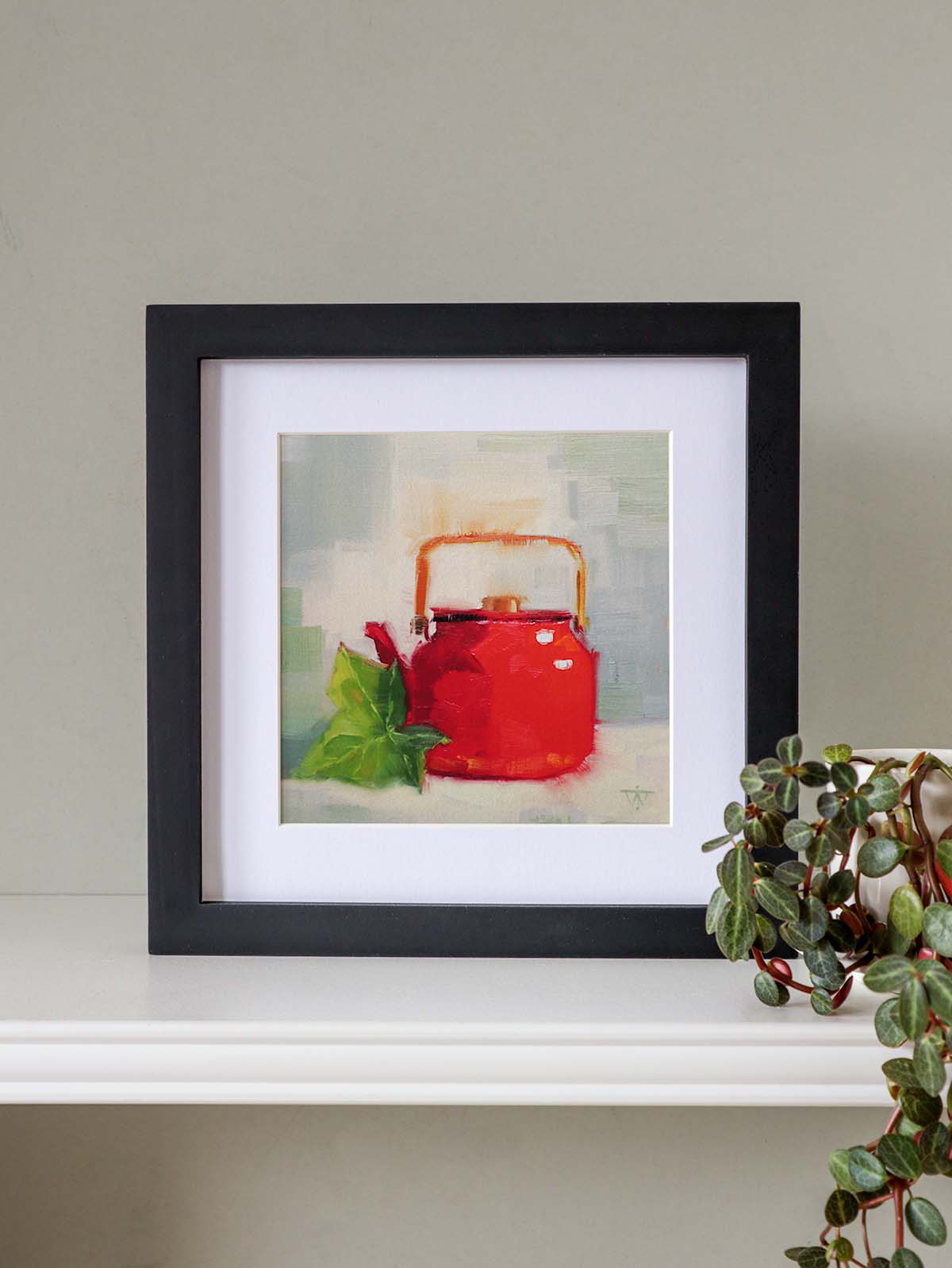 Why not gift a bit of cheer? Know any friends who could do with a spark of joy? This small print with a red enamel kettle might just be it.